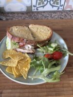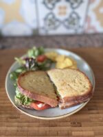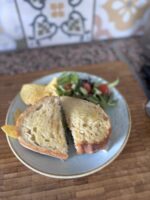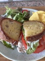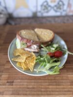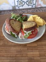 One of our most popular sandwiches. Served on toasted sourdough bread with sliced chicken marinated in lemon, olive oil and herbs layed on top with both lemon mayo and garlic mayo one on the top slice and the other on the bottom with crisp little gem lettace and fresh sliced tomato. A dream sandwich that will want you coming back for more.