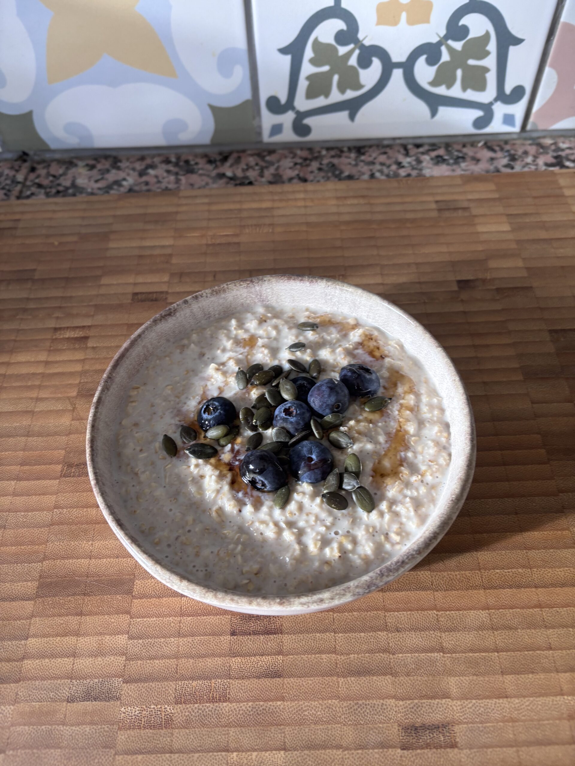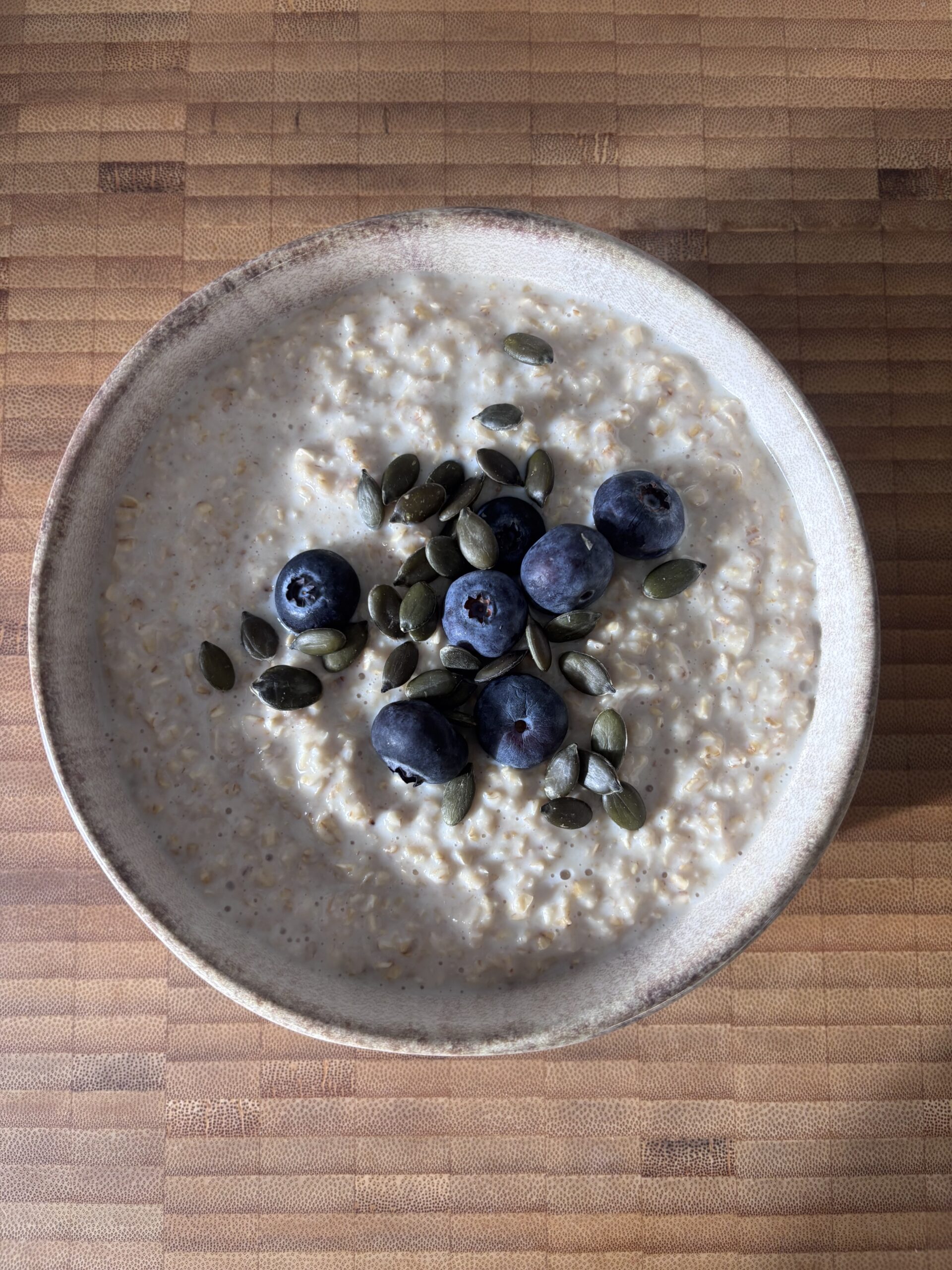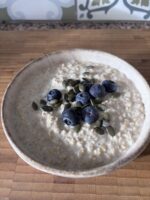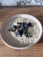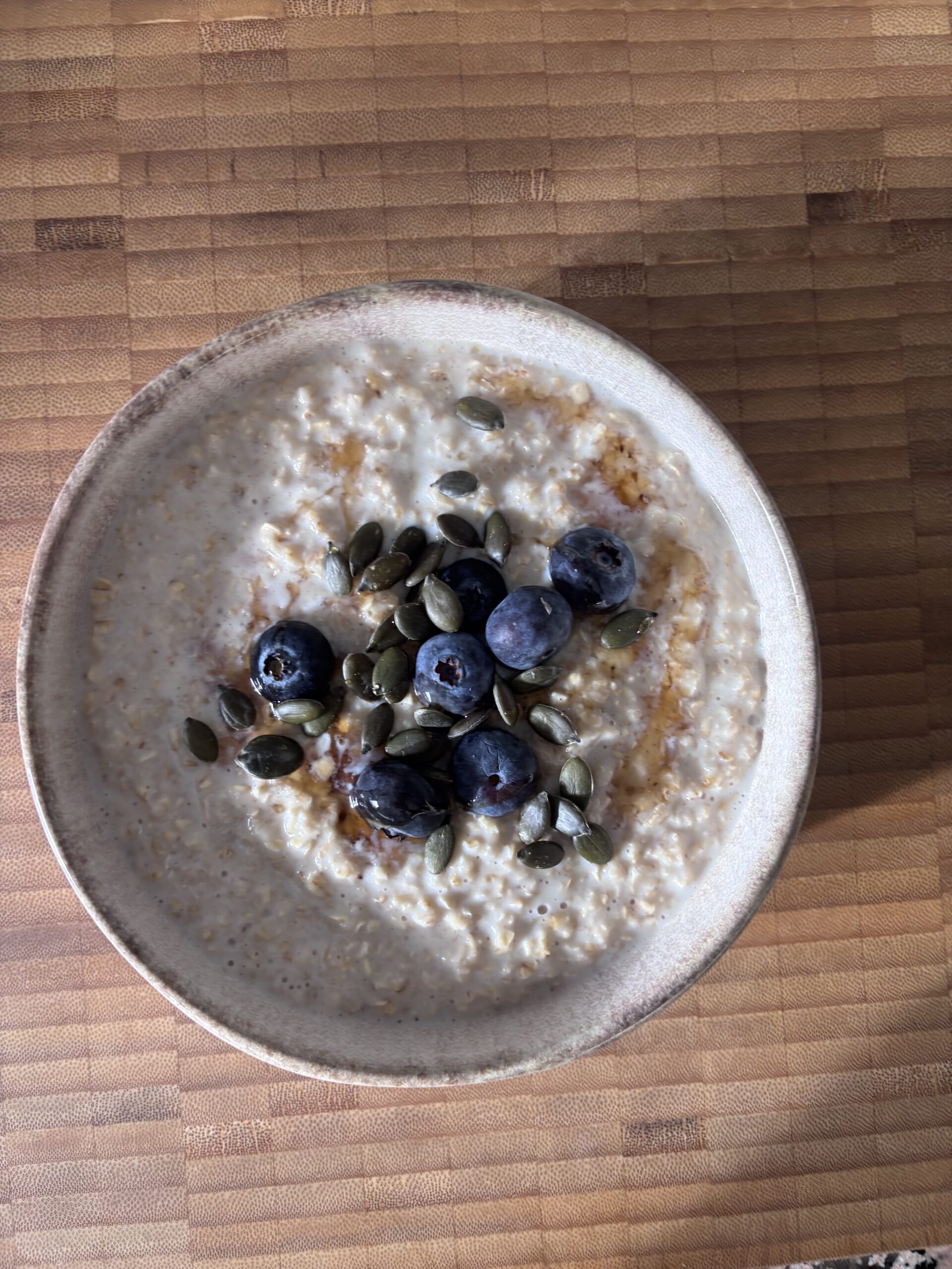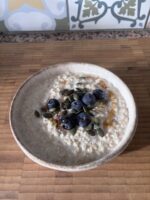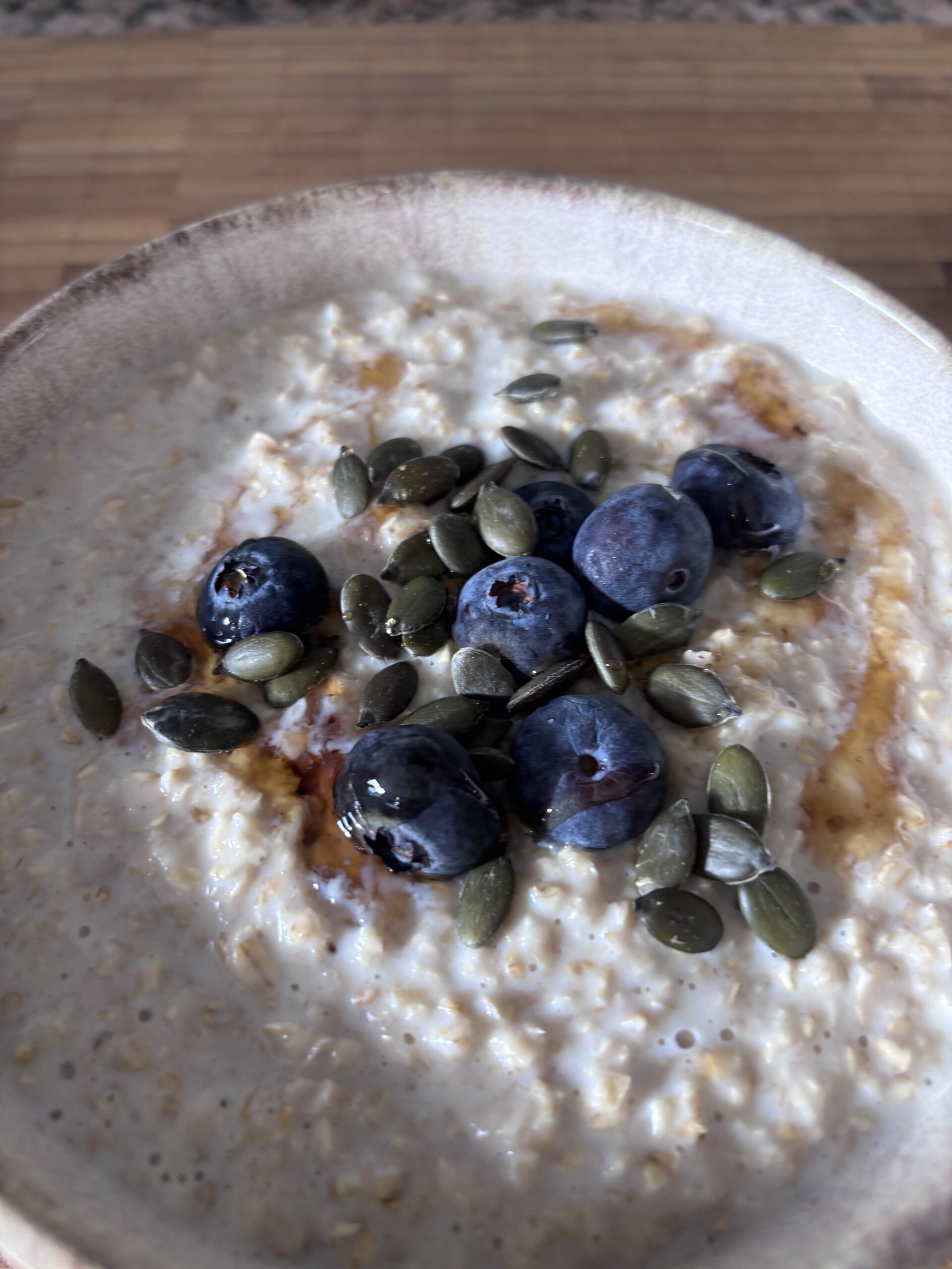 A bowl of oats with a sprinkling of blueberries, pumpkin seeds and a drizzle of honey fuels you for the day.